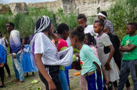 Emily Caldwell from Philipines playing with Macecall children (Macecall Chidren’s Home Meru) during Talento visit at the home.